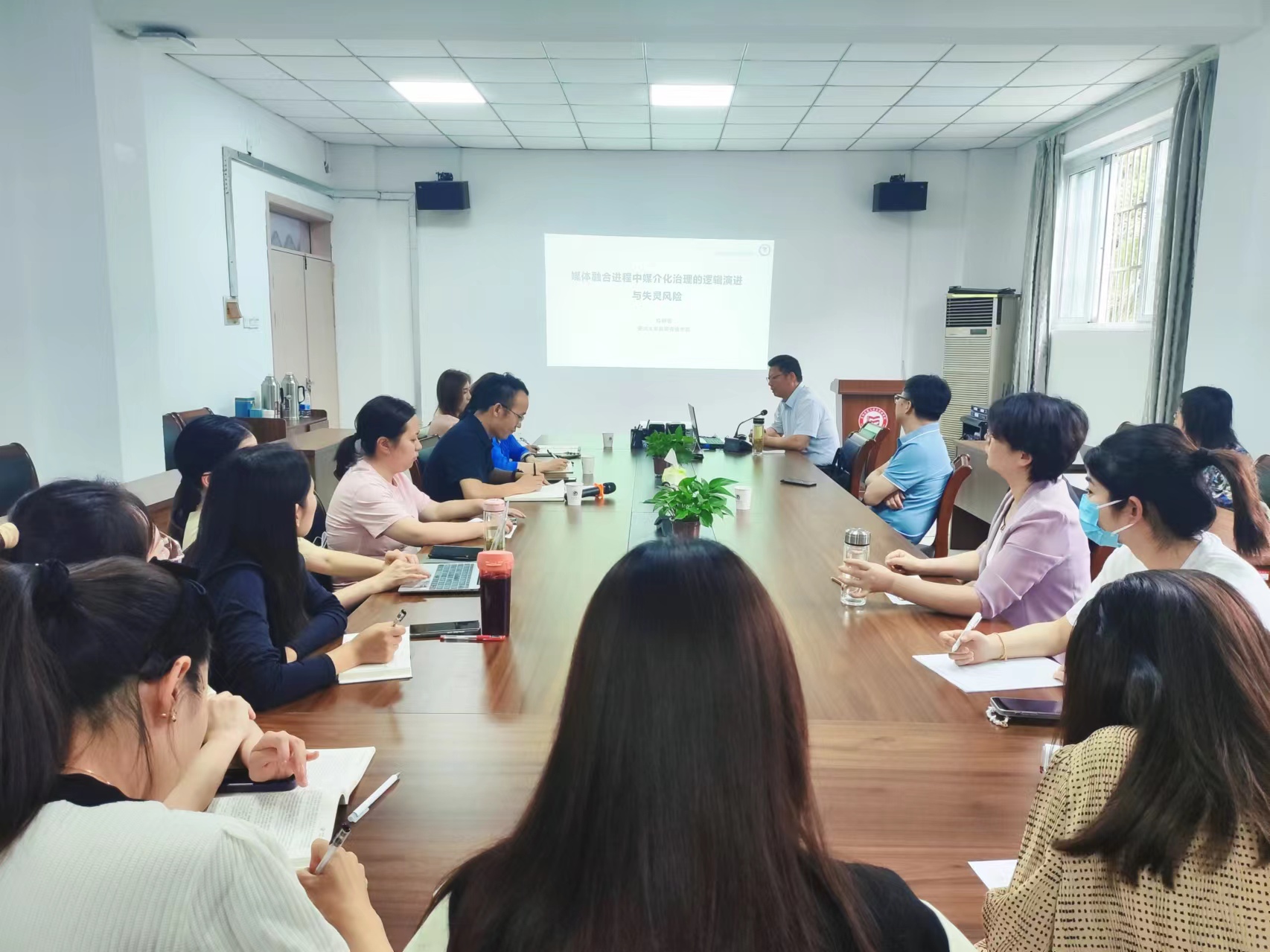 6月5日下午,文學與傳媒學院第5期“湯山傳媒講壇”在敏行樓會議室舉行,安徽大學葛明駟教授應邀作題為“媒體融合進程中媒介化治理的邏輯演進與失靈風險”的學術講座。新媒體系、廣告系全體教師參加,講座由副院長王宇明主持。