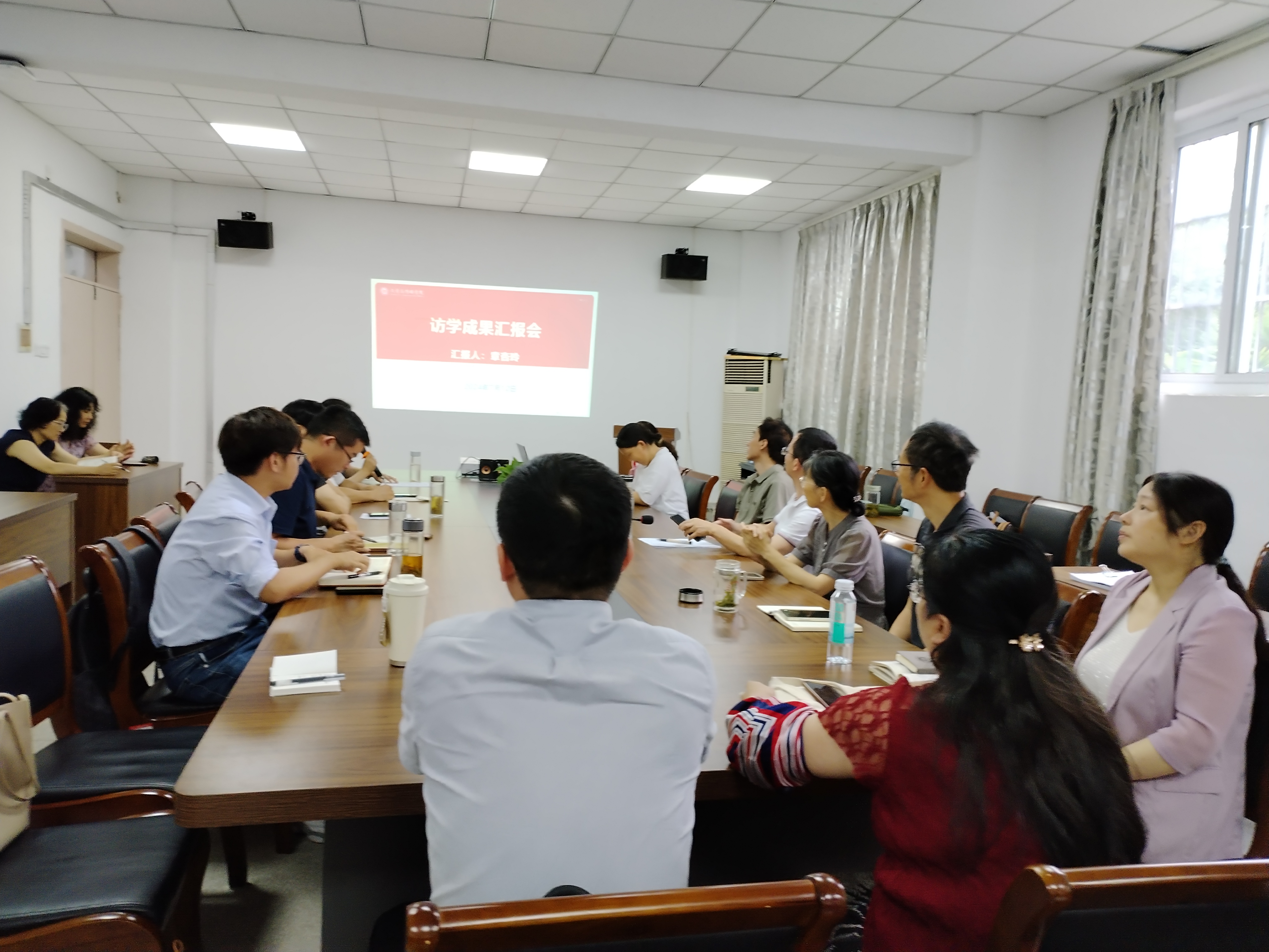 章杏玲從訪學(xué)經(jīng)歷、取得成果、反思體會以及未來規(guī)劃等方面進行了總結(jié)匯報,詳細介紹了訪學(xué)高校北京師范大學(xué)文學(xué)院在課程建設(shè)、教科研團隊建設(shè)、項目申報等方面的做法和經(jīng)驗。訪學(xué)期間,章杏玲主持申報省級教研項目1項獲得立項,參編教材1本,她表示后續(xù)要在前期訪學(xué)的基礎(chǔ)上,進一步凝練科研方向,豐富教學(xué)成果。