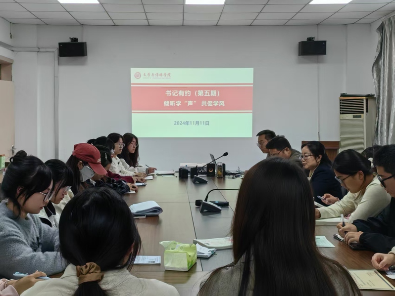 為深入了解學生的思想動態和學習生活情況,進一步加強學院的學風建設,11月11日中午,文學與傳媒學院在學院會議室召開學風建設學生座談會。學院黨委書記袁鳳琴、副書記孫冰,學院團委書記程生風,學院各班級學習委員參會。會議由袁鳳琴主持。