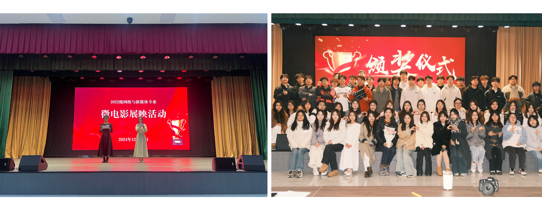 12月12日下午,文學與傳媒學院2022級網絡與新媒體專業在大學生活動中心四樓多功能報告廳舉辦微電影展映活動。指導教師胡雪夢及2022級網絡與新媒體專業全體學生參加本次活動。
