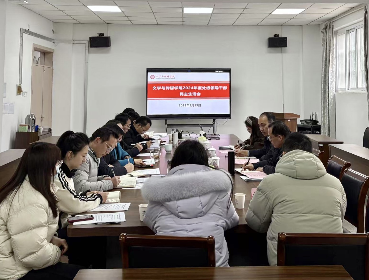 為深入學(xué)習(xí)貫徹習(xí)近平新時(shí)代中國特色社會(huì)主義思想,鞏固深化黨紀(jì)學(xué)習(xí)教育成果,2月19日下午,文學(xué)與傳媒學(xué)院在學(xué)院會(huì)議室召開2024年度民主生活會(huì)。校第五督導(dǎo)組組長、副校長丁俊苗,科研處處長姚磊一行到會(huì)督導(dǎo)。學(xué)院領(lǐng)導(dǎo)班子成員、黨委委員參加會(huì)議,黨支部書記列席會(huì)議。會(huì)議由學(xué)院黨委書記袁鳳琴主持。
