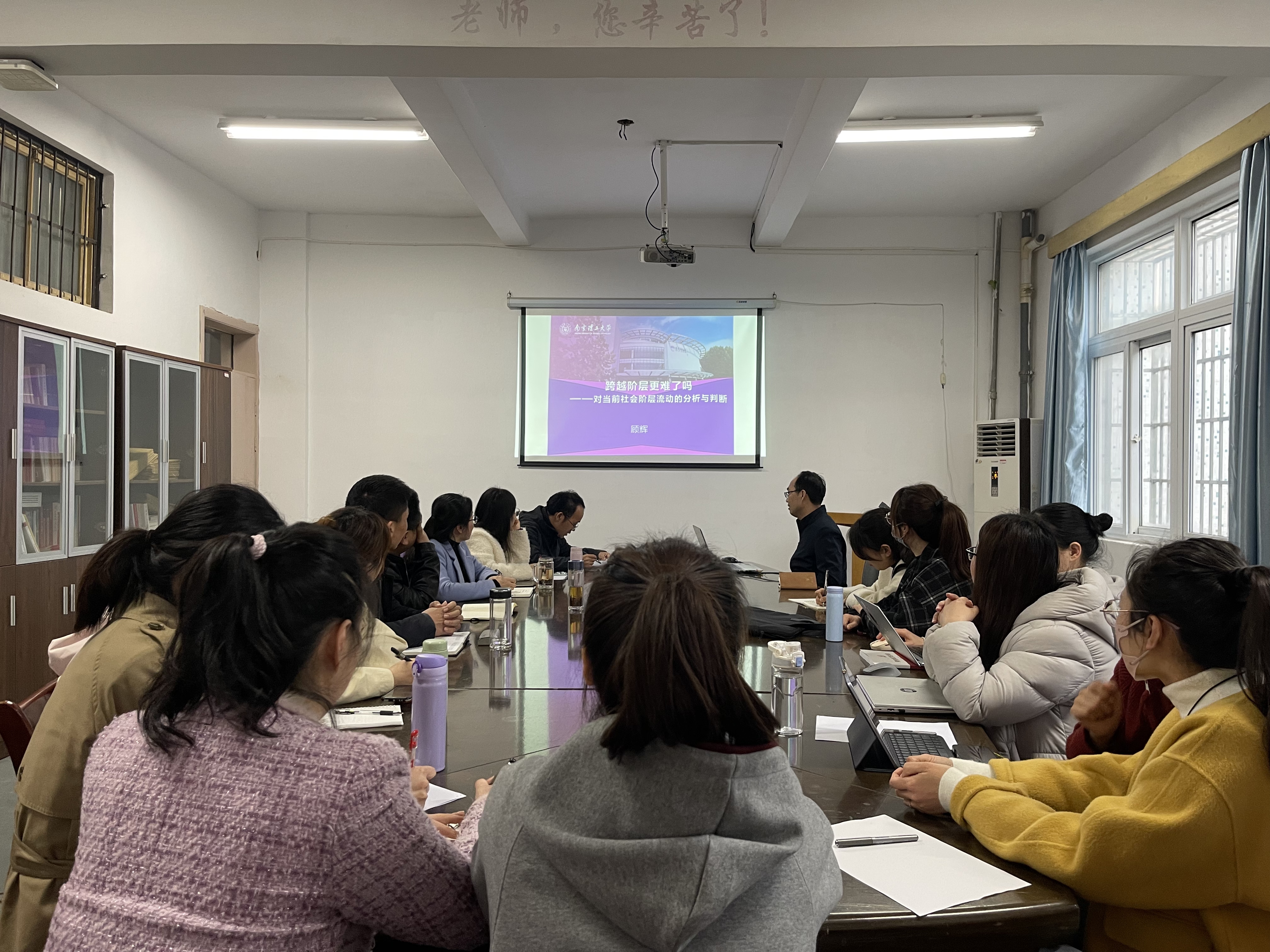 3月12日下午,文學與傳媒學院第7期“湯山傳媒講壇”在敏行樓小會議室舉行,南京理工大學顧輝教授應邀作題為“跨越階層更難了嗎?——對當前社會階層流動的分析與判斷”的學術講座。新媒體系、廣告系全體教師參加,講座由副院長王宇明主持。
