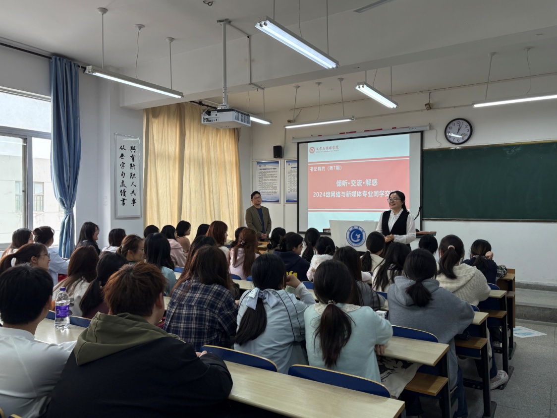 3月27日下午,文學(xué)與傳媒學(xué)院在博學(xué)樓206召開2024級(jí)網(wǎng)絡(luò)與新媒體專業(yè)同學(xué)交流會(huì)。學(xué)院黨委書記袁鳳琴、副書記孫冰、輔導(dǎo)員任冰冰及全體2024級(jí)網(wǎng)絡(luò)與新媒體專業(yè)同學(xué)參會(huì),會(huì)議由孫冰主持。