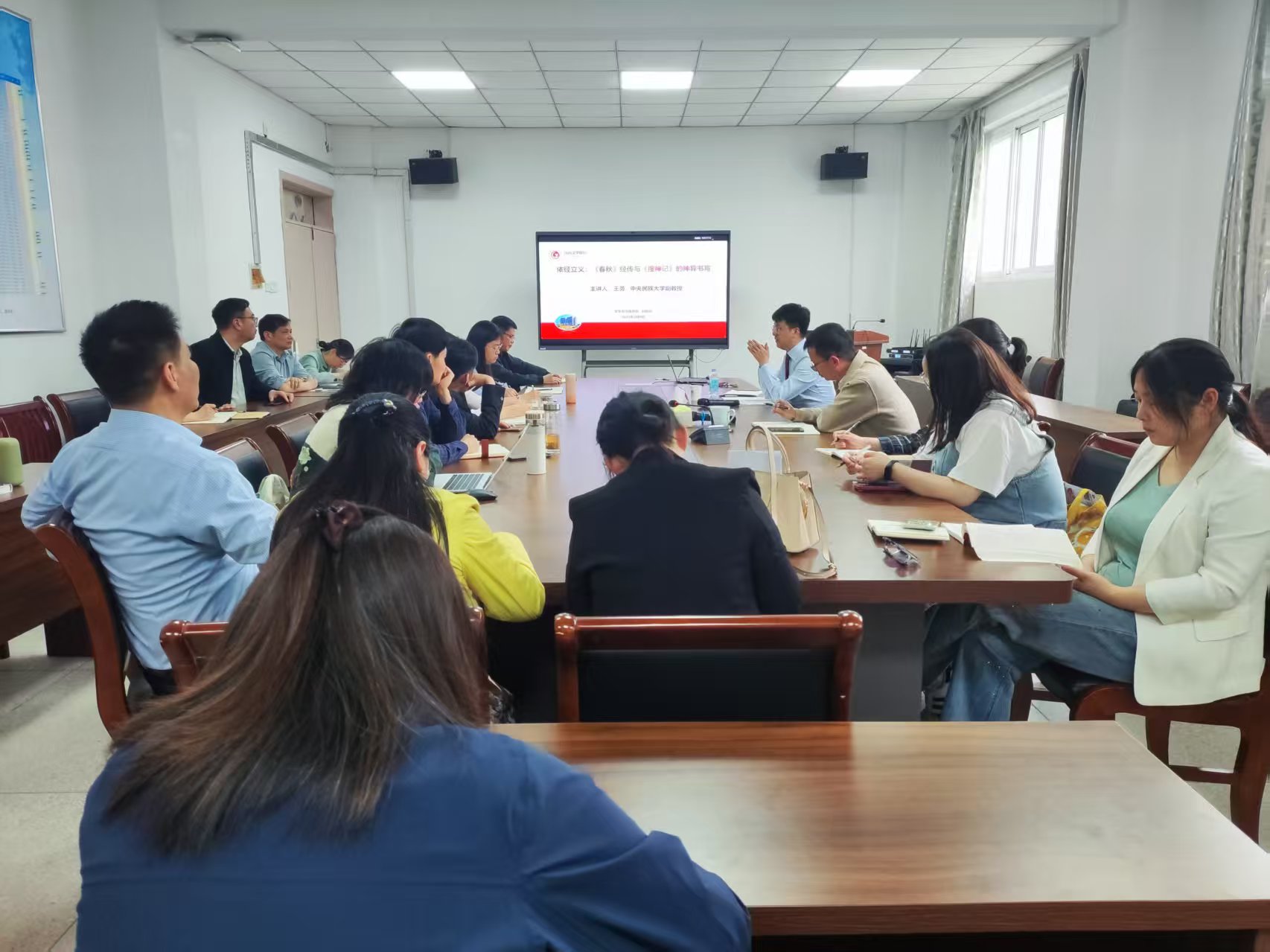 4月9日下午,文學(xué)與傳媒學(xué)院第19期“湯山文學(xué)講壇”在敏行樓會(huì)議室舉行,中央民族大學(xué)副教授王勇應(yīng)邀作“依經(jīng)立義:《春秋》經(jīng)傳與《搜神記》的神異書(shū)寫(xiě)”學(xué)術(shù)講座,中文系部分教師參加,講座由院長(zhǎng)彭正生主持。