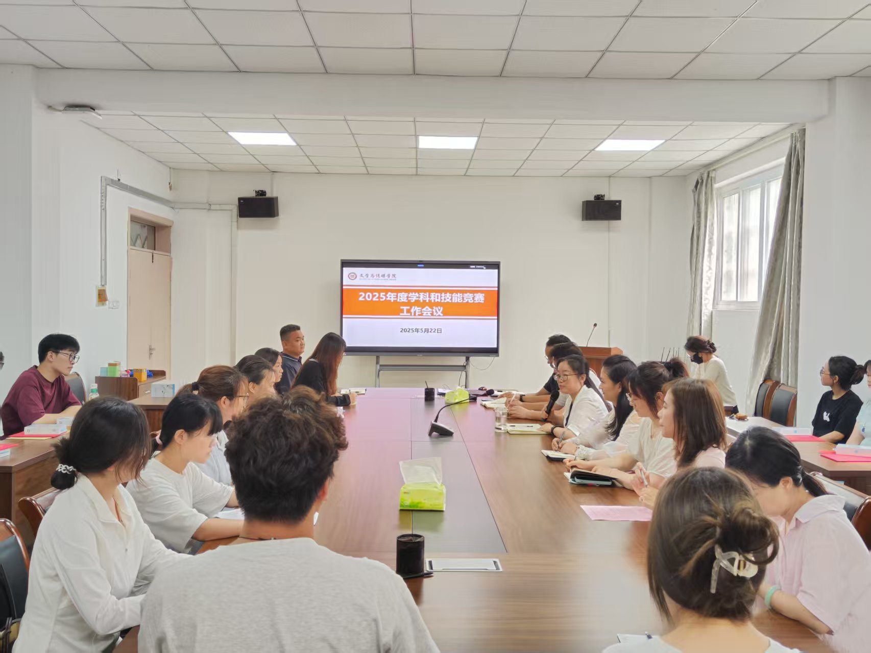 為總結(jié)2024年度學(xué)科和技能競賽經(jīng)驗(yàn),推進(jìn)2025年學(xué)科和技能競賽工作,5月22日中午文學(xué)與傳媒學(xué)院在敏行樓會(huì)議室召開了2025年學(xué)科和技能競賽工作會(huì)議。院領(lǐng)導(dǎo)班子、各基層教學(xué)組織負(fù)責(zé)人、各專項(xiàng)賽事負(fù)責(zé)人、各年級(jí)賽長及部分獲獎(jiǎng)同學(xué)代表參加了此次會(huì)議,會(huì)議由學(xué)院團(tuán)委書記程生風(fēng)主持。