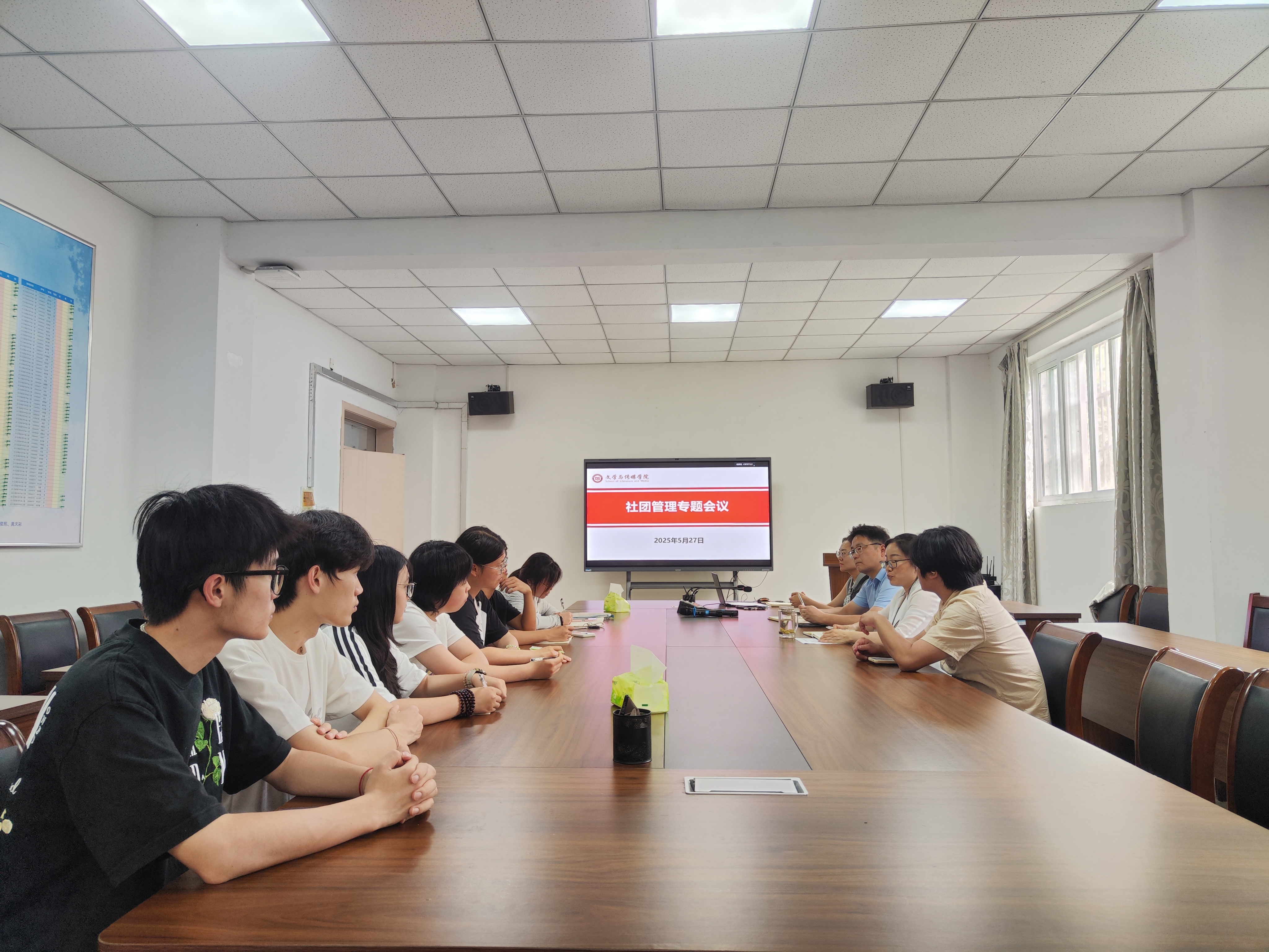 5月27日,文學與傳媒學院在敏行樓會議室組織召開學生社團管理專題會議。院黨委書記袁鳳琴、黨委副書記孫冰、院屬三個學生社團的指導老師及負責人參加了會議。會議由學院團委書記程生風主持。