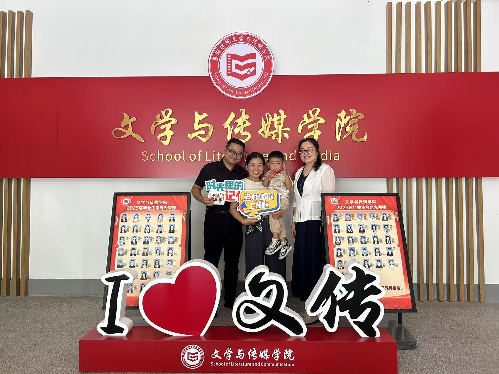 8月15日,暑風蟬鳴,文學與傳媒學院迎來了一批特殊的 “訪客”——2009級漢語言文學1班的“親子返校團”。校友攜子女重校園,赴一場跨越十年的“青春之約”。學院黨委書記袁鳳琴、校友聯絡員李陳熱情接待校友一行。