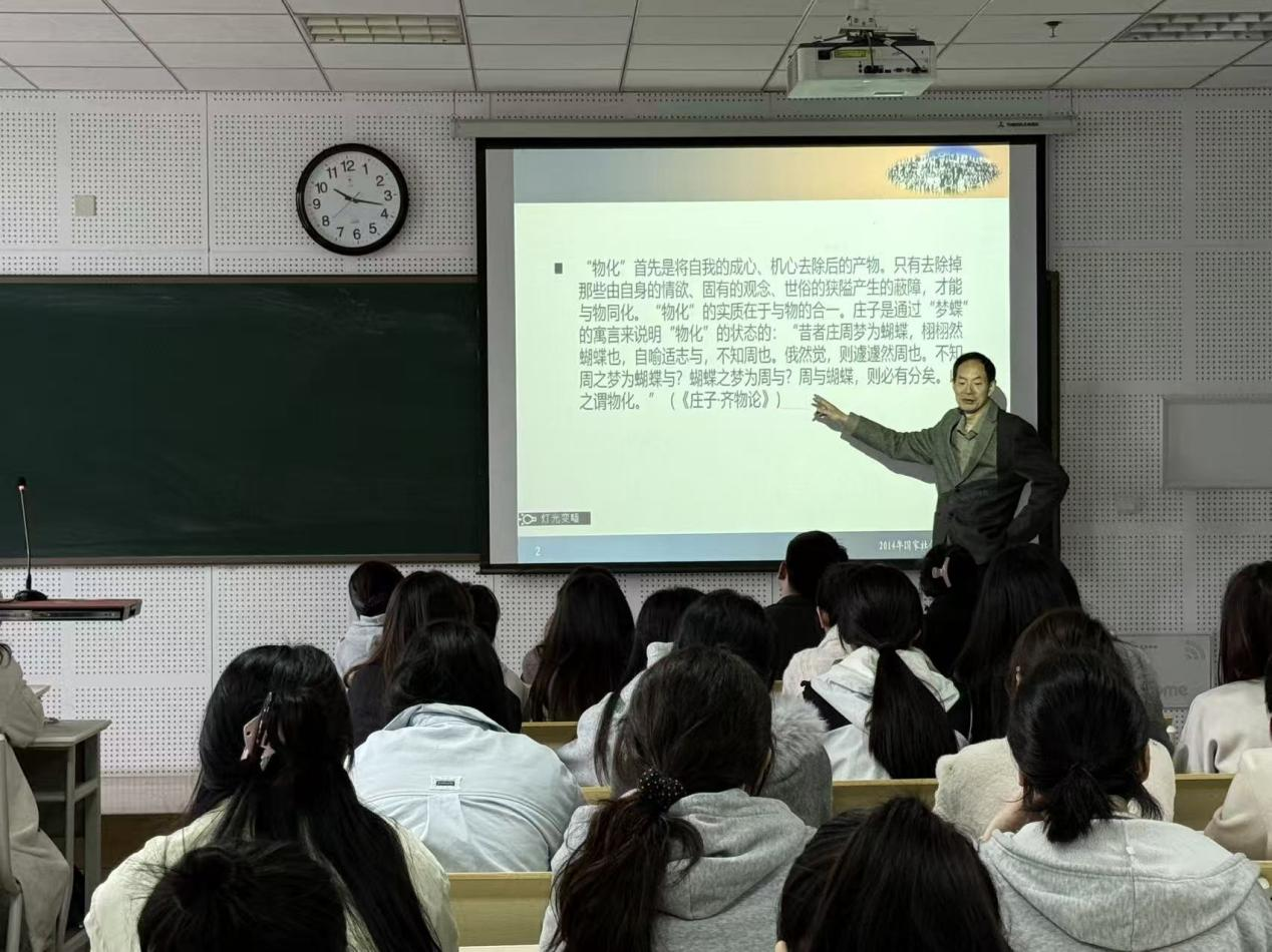 趙東教授以幽默的語(yǔ)言、豐富的案例,深入淺出地勾連出中國(guó)現(xiàn)代文藝?yán)碚摫澈笾袊?guó)古代哲學(xué)的身影,引發(fā)在場(chǎng)師生的熱烈共鳴。現(xiàn)場(chǎng)互動(dòng)頻繁,氣氛活躍,講座在古典哲思與現(xiàn)代美學(xué)之間搭起橋梁,讓師生在思辨中感受到文藝?yán)碚摰纳顚用}動(dòng)。(文/康富強(qiáng) 圖/易班工作站 初審/許潔 復(fù)審/陳先濤 終審/袁鳳琴 發(fā)布/許潔)