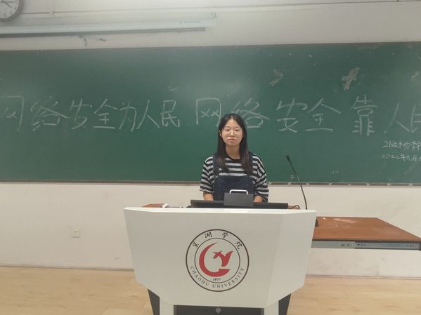 首先,楊穎向同學們介紹了最常見的詐騙手段及其防范方法,近幾年來最常見的網絡詐騙手段就是冒充詐騙,即冒充親人、好友、公檢法單位等實施詐騙,對于此種詐騙最好的防范方法就是向第三方求證,平時注意個人信息的保護,提高防范意識。隨后,她帶著同學們進行網絡安全知識競賽,競賽內容涵蓋了網絡安全法、數據安全法、個人信息保護法等相關知識,同學們興致高昂,爭相競答。最后,她強調網絡安全主要靠自己平時的防護,平時不要點擊來歷不明的鏈接,不要登錄不明網站,嚴禁網絡刷單。