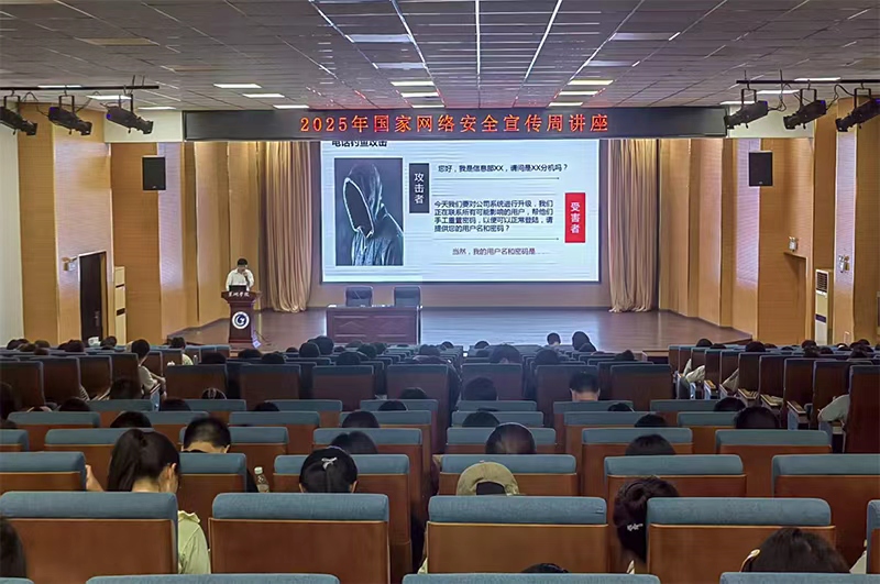 為提升廣大師生網絡安全素養,進一步筑牢校園網絡安全防線,9月16日下午,時值2025年國家網絡安全宣傳周校園日,學校邀請亞信安全科技股份有限公司網絡安全高級工程師馬訓杰在求實樓報告廳作“強化安全意識 筑牢安全防線”專題講座。全校400余名師生參加講座活動,講座由信息化處副處長侯加兵主持。