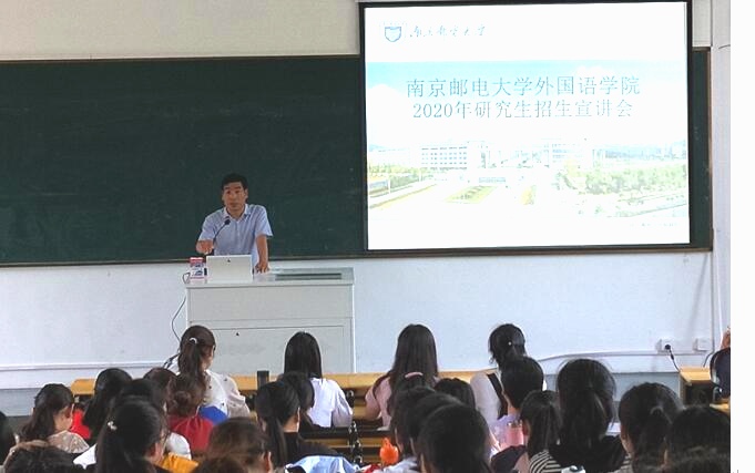 6月10日下午,優秀校友方子純回校,并在外國語學院明德樓院東二教室舉辦了南京郵電大學研究生招生宣講會。宣講會由南京郵電大學海外教育學院副院長方子純教授主講,外國語學院院長柯應根主持,我院2016級學生共100余人聆聽了此次宣講會。宣講伊始,柯應根對方子純教授做了簡短介紹。接下來方子純就目前日益增長的考研人數和緊張的考研形勢進行了簡要分析,隨后他介紹了南京郵電大學外語專業的學科優勢,近幾年外語專業發展以及招生情況。緊接著,指出了考研對未來就業的幫助。同時他也給出了自己的建議,“有考研意向的同學應該早日并且慎重考慮報考的方向和目標,量力而行,不要因一時的決策失誤而耽誤一年的時間。”方子純還提醒在場學生在考研成功后也可以試著攻讀更高的學位,靠努力為自己的將來創造更多機會。最后,同學們就考研問題紛紛提問,方子純對同學們的問題一一作出細致回答。