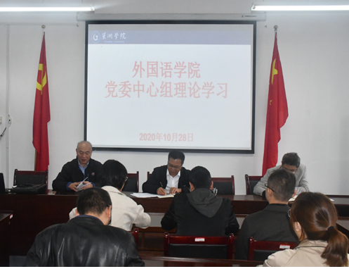 10月28日下午,外國語學院黨委中心組在明德樓四樓會議室開展政治理論學習,會議由黨委書記單自華主持。