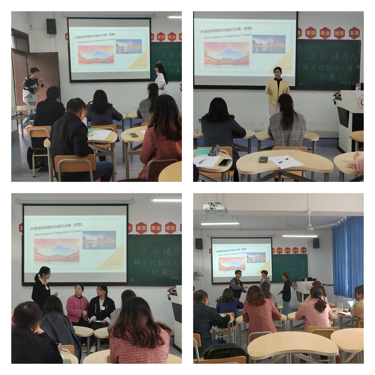 伴著初春腳步的到來,柳樹舒展開了黃綠柔嫩的枝條,花兒亦悄然地靜美綻放,在充滿著勃勃朝氣的校園內,同學們滿懷熱情與期盼。為培養學生們的跨文化交際意識和能力,選拔出具有一定跨文化交際水平,能夠進行有效、得體的跨文化交流的學生,經過后期的指導和培訓,打造一組具有較高水準的跨文化交際能力大賽隊伍,外國語學院于3月31日在明德樓305和306教室舉辦了跨文化能力大賽校內選拔賽。