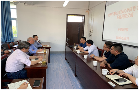 5月8日下午,馬鞍山綜合保稅區(qū)管委會(huì)副主任李國(guó)勇率部分園區(qū)企業(yè)代表一行6人蒞臨外國(guó)語(yǔ)學(xué)院交流校地合作事宜。外國(guó)語(yǔ)學(xué)院黨政班子在明德樓會(huì)議室接待了李國(guó)勇一行,會(huì)議由外國(guó)語(yǔ)學(xué)院?jiǎn)巫匀A書記主持。