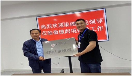 徐柳凡在聽取企業(yè)的介紹后,對校友企業(yè)發(fā)展取得的成績表示了祝賀,也感謝企業(yè)對母校事業(yè)發(fā)展的關(guān)心。他表示,為了能夠進(jìn)一步提高人才培養(yǎng)的質(zhì)量,特別是學(xué)生的實(shí)踐能力,學(xué)校一直高度重視實(shí)習(xí)就業(yè)基地的開拓與建設(shè)。徽傲不僅是校友企業(yè),而且也是跨境電子商務(wù)企業(yè),與外國語學(xué)院的專業(yè)設(shè)置契合度高,相信校企的合作,一定會實(shí)現(xiàn)雙贏。隨后,徐柳凡與黃濤共同為實(shí)踐教學(xué)與就業(yè)創(chuàng)業(yè)基地揭牌。