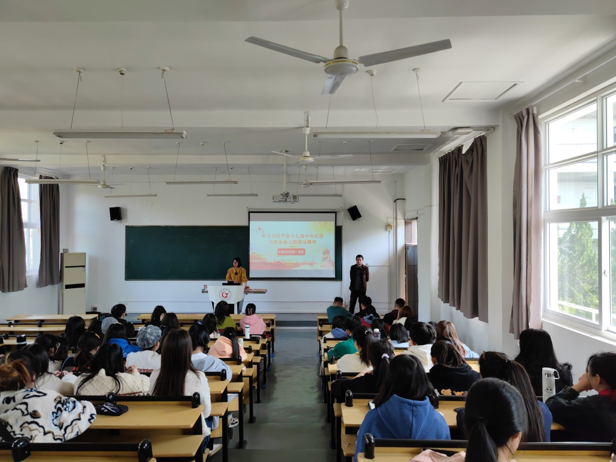 為進一步教育并引領黨員同志明確黨員職責、做好黨員工作,外國語學院黨支部于3月21日下午在明德樓西二教室開展學習習近平在十九屆中央紀委六次全會上的重要講話精神的專題學習教育活動。學生第一、二黨支部全體黨員參加了此次學習,學習活動由學生支部書記王凱、張園園共同主持。