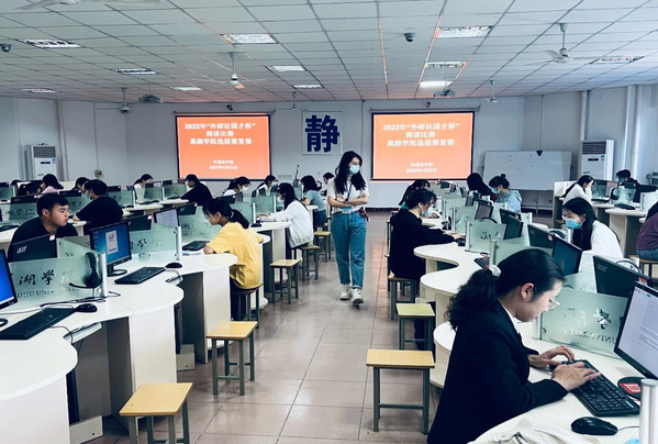 4月23日上午,閱讀競賽團隊在求實樓自主學習中心第一機房開展了2022年“外研社·國才杯”英語閱讀大賽巢湖學院校內選拔賽復賽。經過校內初賽遴選,來自不同學院各年級50名同學參加了此次復賽。