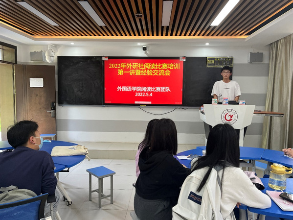 5月4日下午,外國語學院閱讀競賽團隊在明德樓105教室舉辦2022年“外研社·國才杯”英語閱讀比賽培訓暨備賽經驗交流會。經過項目團隊校內比賽選拔,共有20名學生入圍強化培訓階段。團隊指導老師王鋼和程艷共同主持了交流會。