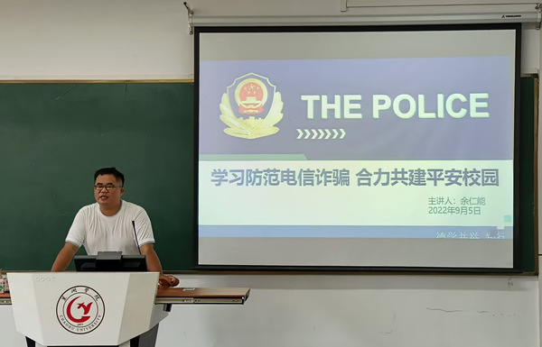 為增強2022級新生的安全防范意識,提高同學們的安全防范能力,全面普及校園安全常識,幫助同學們熟悉生活中常見的網絡詐騙形式。9月6日下午,外國語學院在明德樓北201教室召開2022級新生防范電信網絡詐騙主題班會。