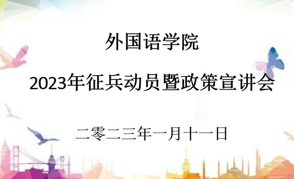 為響應黨和國家的號召,鼓勵青年學子攜筆從戎,幫助廣大同學了解應征入伍相關政策和流程,扎實推進我院2023年征兵工作,外國語學院于1月11日上午通過騰訊會議線上召開了2023年征兵動員暨政策宣講會。宣講會由輔導員張園園主持,學院各年級近90名學生參加本次宣講會。