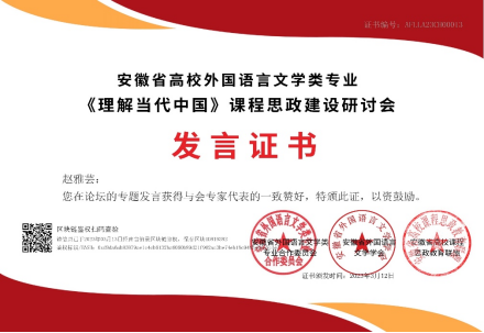 此次會議為深化新時代外語教育改革、全面開展外語專業課程思政建設提供了新思路、好經驗。外國語學院將繼續扎實推進“三進”工作,以學院的省級課程思政示范中心(巢湖學院英語專業課程思政示范中心)建設為抓手,在已有成果的基礎上深入推進《理解當代中國》系列教材的培訓、使用和相關課程的開設。繼續以落實立德樹人根本任務,以為黨育人、為國育才為目標,提高學生運用外語向國際社會講好中國故事的能力,著力將學生培養成具有家國情懷、全球視野、專業本領的新時代國際化外語人才。(文、圖/趙雅蕓 初審/余鵬 終審/余榮琦)