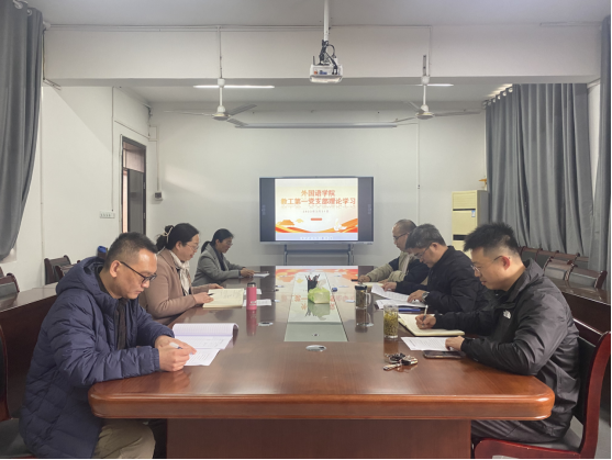 3月31日下午,外國語學院教工第一黨支部在明德樓二樓會議室開展3月份政治理論學習。支部全體黨員參加,支部書記余鵬主持學習會議。