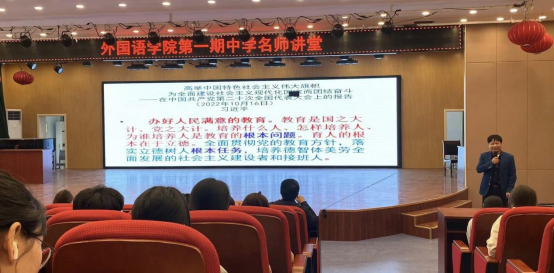 閔長政以“新課標下核心素養的解讀與實踐 ”為題,解讀了如何圍繞普通高中英語課程標準的基本理念開展教學實踐。隨后他詳細介紹了學科核心素養與課程目標,包括語言能力、文化意識、思維品質和學習能力等。最后,閔長政又結合自己多年從教經驗,分享了作為一名中學英語教師,應當如何在教育教學實踐中踐行社會主義核心價值觀,增進對習近平新時代中國特色社會主義思想認同、政治認同、理論認同和情感認同。他強調作為一名師范生,一定要樹立堅定信念,貫徹黨的教育方針,以立德樹人為己任,遵守中學教師職業道德規范,增強依法執教意識,立志成為“四有”好老師。在互動環節,部分同學和教師還就具體教學環節、教學內容和教學方法向三位專家提問請教,專家們均給予了詳細的解答,現場氣氛熱烈。