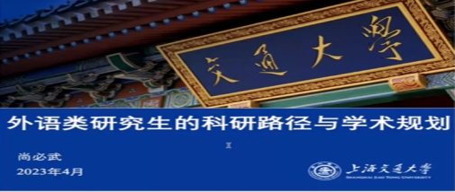 上海交通大學長聘教授,博士生導師,外國語學院副院長尚必武教授的報告題為“外語類研究生的科研路徑與學術規劃” 。尚必武結合自身的求學經歷,重點探討了如何確定學術方向,如何選取科研路徑,以及如何展開與實現學術規劃三個方面的問題。