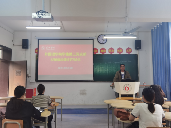 5月6日下午,外國語學院學生第三黨支部在明德樓205教室召開五月份政治理論學習會議暨習近平總書記重要回信精神專題學習,迅速掀起學習貫徹習近平總書記重要回信精神熱潮。