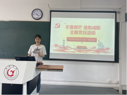 為深入營造以黨建引領(lǐng)促學風,榜樣示范共成長的良好氛圍,5月9日下午,外國語學院學生第一黨支部在明德樓西二教室開展“不啻微芒,造炬成陽”主題黨日活動。此次活動邀請四名考研、考公上岸黨員分享備考經(jīng)驗,學生第一黨支部全體成員、20級商務英語專業(yè)全體學生參加。