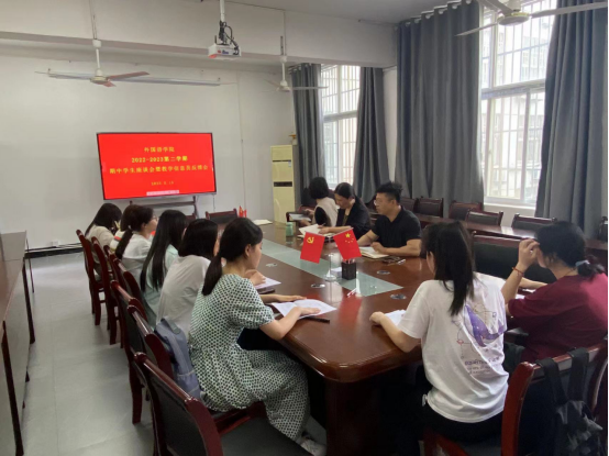 為了進一步加強教學管理,充分發(fā)揮學生參與教學管理和自我管理的主體作用,及時了解學生的學習情況和教師課堂教學情況,促進學院專業(yè)教學持續(xù)改進,5月15日下午,外國語學院在明德樓二樓會議室召開2022-2023第二學期期中學生座談會暨教學信息員反饋會。外國語學院副院長余鵬、教學督導周建華、賀靜,教科研秘書李明以及在校各班級學生代表和教學信息員參與座談。會議由外國語學院副院長余鵬主持。