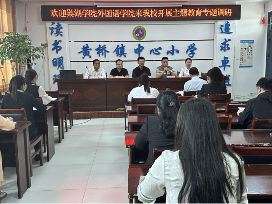 為響應中央號召在全黨大興調查研究的工作要求,探索大中小學課程思政一體化教學路徑,推進外國語學院課程思政建設走向深入化,5月25日,外國語學院副院長余鵬,校團委副書記(掛職)、外國語學院教工第二黨支部副書記李成飛赴潁上縣黃橋鎮中心學校和中心小學開展“大中小學英語課程思政一體化教學路徑及師資培養研究”主題教育專題調研。潁上縣黃橋鎮中心學校校長汪洋、潁上縣黃橋鎮中心小學校長蘇潁,中心學校及中心小學全體英語教師參加調研活動。
