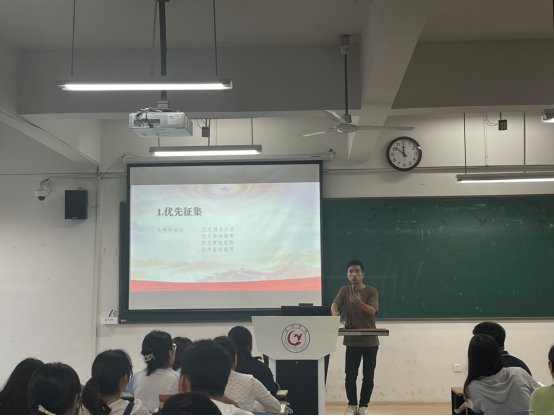 李磊圍繞就業(yè)工作機制建設(shè)、暢通就業(yè)渠道和重點群體就業(yè)幫扶等方面解讀了學(xué)院2024屆畢業(yè)生就業(yè)工作實施方案。張軻從應(yīng)征要求、入伍政策和退伍待遇三個方面就目前安徽省大學(xué)生征兵工作18項政策進(jìn)行了詳細(xì)宣講。陳太龍分享了自己在部隊的軍旅生活并講解了入伍對于學(xué)生的未來發(fā)展的積極影響。余鵬指出實習(xí)是學(xué)校人才培養(yǎng)的一個重要環(huán)節(jié),是教學(xué)計劃中綜合性實踐教學(xué)的一部分,是對學(xué)生所學(xué)知識和技能進(jìn)行實踐的檢驗。他要求同學(xué)們要擺正實習(xí)心態(tài),迅速完成角色轉(zhuǎn)換,遵守相關(guān)實行規(guī)定。