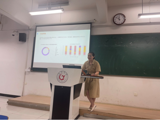 張蕊結合當前就業形勢,近期23屆畢業生就業情況以及學院訪企拓崗情況向2024屆學生介紹目前就業存在的問題:一是自我認知模糊,就業方向不清晰;二是自身定位不準,就業心態不端正;三是自身能力不足,就業準備不充分。她鼓勵同學們一定要樹立先生存后發展,先擇業再就業的觀念,要認清就業形勢,堅定就業意識;明確就業目標,放平就業心態;拓寬就業渠道,積極主動就業。
