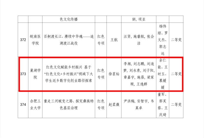 省級二等獎作品《紅色文化賦能鄉(xiāng)村振興基于“紅色文化+鄉(xiāng)村振興”視域下大學生返鄉(xiāng)數(shù)字化創(chuàng)業(yè)路徑探索——以宣城市郎溪縣為例》為2023年全國大學生“鄉(xiāng)村振興”志愿服務團隊,巢湖學院2023年暑期“三下鄉(xiāng)”社會實踐校級重點團隊。本團隊采用“2+8+10”團隊管理模式,即2名教師黨員(指導教師)、8名學生黨員和10名共青團員,發(fā)揮黨建引領(lǐng)帶團建,團建反哺促黨建的育人功效。本團隊依托于郎溪縣的紅色文化與紅色故事,以郎溪縣大學生返鄉(xiāng)數(shù)字化創(chuàng)業(yè)為實踐調(diào)研主題,在郎溪縣開展調(diào)研主題問卷發(fā)放、訪談調(diào)研、鄉(xiāng)村振興和電商助農(nóng)政策宣講、電商助農(nóng)現(xiàn)場直播、短視頻VLOG制作與投放等活動,以青春力量宣揚紅色文化,促進鄉(xiāng)村振興。
