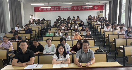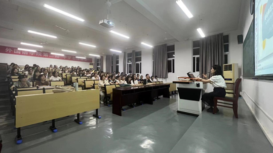 為進一步落實專業人才培養方案,強化師范生職業能力教育,探索師范類高校教師教育課程與中小學教學實際的有效銜接與深度融合,9月27日下午,外國語學院在明德樓西二舉辦了“外國語學院第二期中學名師講堂”。本次活動邀請到首屆全國中小學外語教師教學能手、宣城市“學科帶頭人”、宣城市教研室兼職教研員、涇縣教研室教研員、涇縣中學高級教師潘家媛。此次名師講堂包含兩個專場講座:“大單元教學與案例分析”和“英語師范生專業發展”,以及互動交流環節。外國語學院院長余榮琦、副院長余鵬、英語系全體教師、2020級和2023級英語(師范)專業學生參加了此次活動。