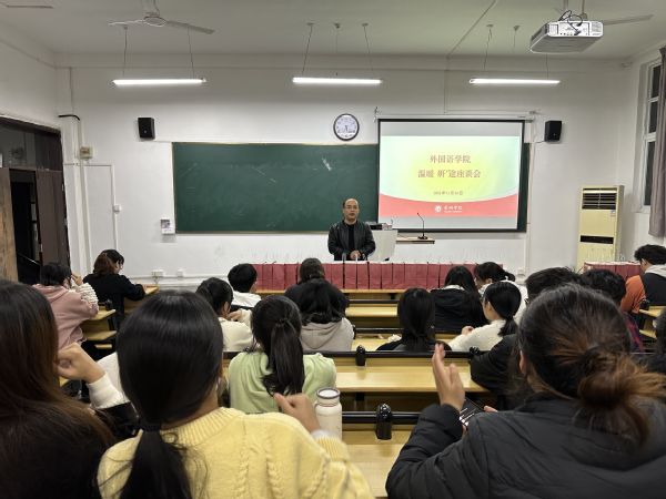 為鼓舞畢業班同學考研士氣,堅定考研信心,緩解他們的備考壓力,11月22日下午,外國語學院在明德樓東二教室組織開展2024屆考研學生慰問活動。學院黨委副書記李磊、2024屆畢業班輔導員李玲和部分考研學生參加活動。