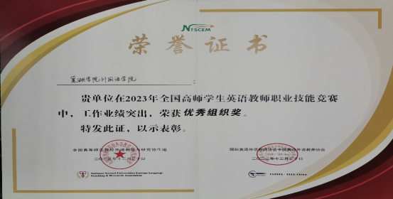 近日,由全國高等師范院校外語教學與研究協作組,國際英語外語教師協會中國英語外語教師協會聯合主辦的2023年“全國高師學生英語教師職業技能競賽決賽”成績公布。我校學子取得佳績,斬獲全國一等獎7名、二等獎7名,三等獎12名,學校外國語學院獲得“優秀組織單位”。