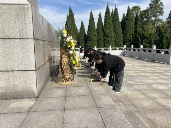 從青年學生們踏入烈士陵園的那一刻,便感受到了陵園嚴肅莊重氛圍。全體青年學生們瞻仰紀念碑,表達對烈士們的敬仰之情。接著,同學們用自帶的垃圾袋為烈士陵園清除垃圾,將革命先烈墓碑前的鮮花擺放整齊,為烈士陵園創造整潔的祭掃環境。隨后,同學們紛紛來到紀念碑前,向革命先烈們獻上鮮花,鞠躬、默哀。革命先輩們用鮮血換來今天的幸福生活,新時代的新青年應牢記歷史,不忘初心,珍惜來之不易的美好生活。通過祭掃活動,同學們瞻仰了紀念碑,寄托了對革命先烈的深切哀思,感受到了紅色歷史,汲取了奮進力量。