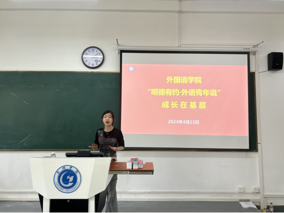 為進一步加強校友與母校之間的交流聯絡,發揮優秀校友的榜樣引領作用,引導在校學生樹立正確的職業認知,激勵廣大學生成長成才,4月23日下午,外國語學院在明德樓東二教室舉辦“校友面對面”分享交流會暨“成長在基層”優秀校友報告會,本次會議邀請到2022屆英語(師范)畢業生劉夢雨分享求學成長經歷,本次會議由學院團委副書記余仁能主持。