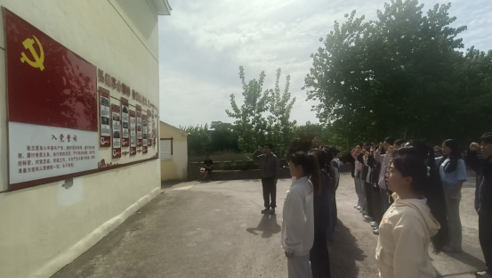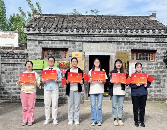 在陳原道故居前,學(xué)生第四支部書記方磊老師帶領(lǐng)黨員同志重溫了入黨誓詞。在莊嚴(yán)的黨旗下,師生們莊嚴(yán)宣誓,這不僅是對革命先烈的緬懷,也是對青年學(xué)子理想信念的一次深刻黨性教育。