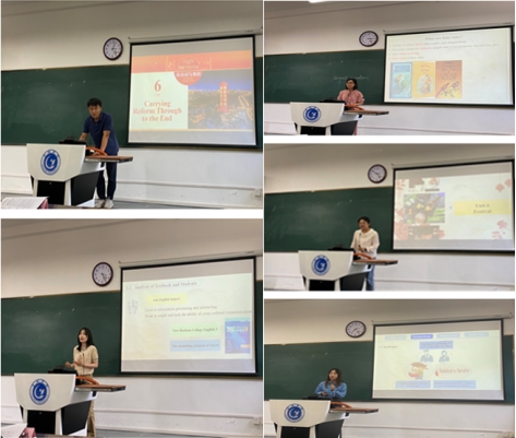 決賽內容包括教學設計、說課和教學呈現,五位老師分別進行了展示。陳國君展示的課程是《中國文化概論》,通過講述中國文化的歷史淵源、基本精神和現代價值,引導學生感受中華優秀傳統文化的博大精深和獨特魅力。黃潔茹在《大學英語(三)》課程中,運用混合式教學的理念和方法,結合線上自主學習、線下互動討論等多種形式,激發學生的學習興趣和主動性。馬曼華在《大學英語讀寫》中利用網絡平臺和多媒體資源,為學生打造了一個充滿活力和創意的學習空間。精心挑選的閱讀材料不僅涵蓋了廣泛的知識領域,更注重與中國新時代發展緊密相關的內容。徐琴的《綜合英語(一)》課程選用了經典童話故事《夜鶯與玫瑰》引導學生認識“小愛”與“大愛”的深刻內涵。學生在學習語言的同時,領略到文學作品的魅力,促使學生對人生和社會進行深入思考。汪袁圓在《綜合英語》課程中,對二十四節氣的起源、歷史背景、文化內涵等方面進行了全面解讀,帶領學生體驗了中華文化的博大精深和獨特魅力。
