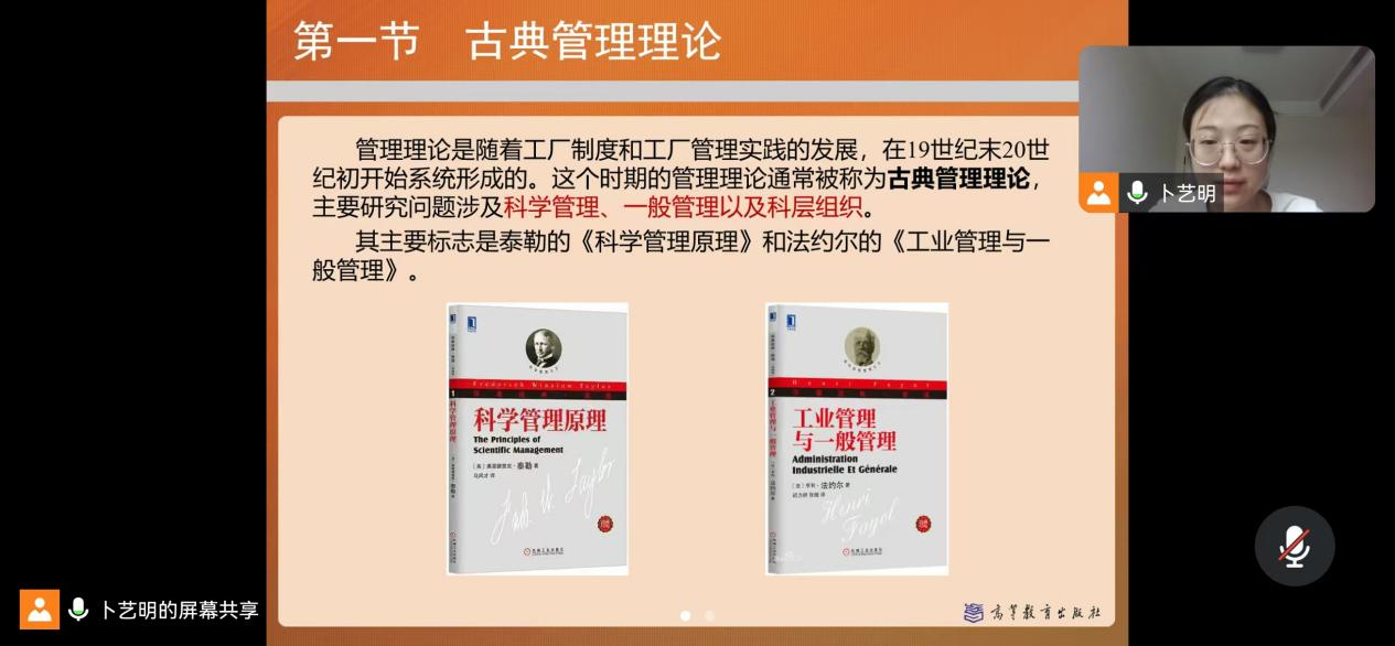 8月26日上午,商務(wù)課程一組開展教學(xué)展示活動(dòng),由卜藝明老師進(jìn)行授課演示,奚偉、楊雪、黃燕蕓參與觀摩。卜藝明授課內(nèi)容為《管理學(xué)》課程第一節(jié)——“管理理論的歷史演變”。詳細(xì)講解了管理學(xué)理論的發(fā)展史,從古典管理理論到現(xiàn)代管理理論的發(fā)展,由淺入深,重點(diǎn)突出,豐富翔實(shí)。