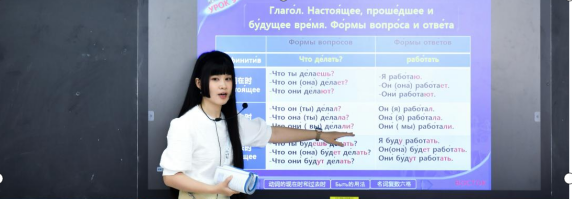 本次公開課主要講授俄語動(dòng)詞“делать”及相關(guān)語法。授課老師陳婉柔語言流暢、重點(diǎn)突出,展現(xiàn)了嫻熟的教學(xué)技能和扎實(shí)的教學(xué)基本功。通過對話練習(xí),結(jié)合動(dòng)詞第一變位和第二變位語法、“делать”的變位形式進(jìn)行復(fù)習(xí),回顧了與本課相關(guān)的“現(xiàn)在時(shí)”、“過去時(shí)”和“禁將來時(shí)”三個(gè)句型的語法。