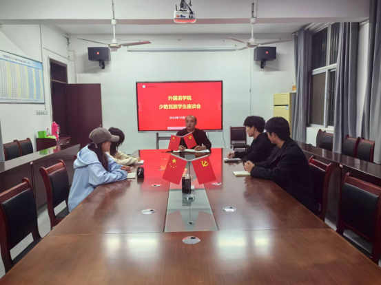 為深入貫徹落實黨的二十屆三中全會精神,做好民族團結教育工作,10月28日晚,外國語學院召開少數民族學生座談會。學院黨委副書記李磊及學院全體少數民族學生參加了活動?;顒佑衫罾谥鞒帧?/span>