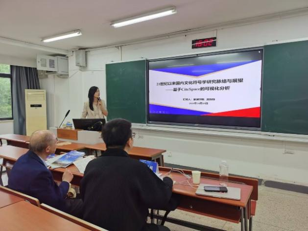 10月18日,中國符號學常務理事會及基地聯盟成員代表會議率先進行。會議由中國語言與符號學研究會秘書長,蘇州大學外國語學院博士生導師王軍教授主持。南京師范大學、四川大學、蘇州大學、西北師范大學、同濟大學、上海大學等基地聯盟的代表先后做了年度工作匯報。會議審議了巢湖學院外國語學院“符號學理論與應用研究中心”加入基地聯盟的申請。徐結平就研究中心的創建、成員構成以及取得的研究成果進行了詳細介紹。經大會審議,一致通過同意外國語學院研究中心加入基地聯盟。隨后,中國語言與符號學研究會會長王銘玉教授對新加盟單位表示祝賀并做了總結講話。王銘玉指出在今后的工作中各研究中心要秉持研究特色與特長并起,人才與科研并重,國內與國際協同發展的理念,為中國符號學的發展貢獻自己的力量。在19日下午的分論壇上,徐結平以《皮爾士實用主義思想的符號架構》為題,湯玲玲以《21世紀以來國內文化符號學研究脈絡與展望——基于Citespace的可視化分析》為題,分享了各自的最新研究成果,并就相關內容同與會專家進行了深入交流。