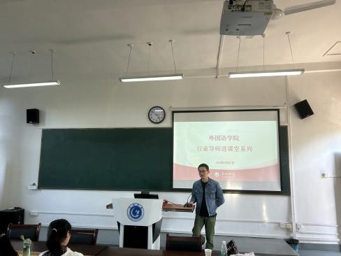 10月23日,浙江永康久久太陽電子商務有限公司(以下簡稱“久久太陽”)企業管理人員為外國語學院24級商務英語專業新生講授專業導論課。久久太陽是浙江區域內首家阿里巴巴外貿人才服務商,專注于為跨境電商企業提供外貿業務員招聘和外貿技能培訓等服務。