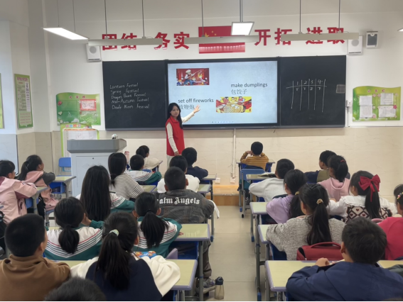 本次授課的主題為中國傳統節日和榜樣的力量。課堂上,志愿者們使用生動的例子引入本次課程主題,以生動有趣的形式進行講解,讓同學們在活躍的氛圍中輕松學習,增強英語課堂學習的趣味性,提高了課堂參與程度。志愿者們設計了豐富的小組活動和游戲環節,小朋友們積極舉手回答問題,營造了輕松快樂的課堂氛圍。志愿者們為積極參與的同學們發放小紅花和小獎品,鼓勵更多同學們參與進來,大家都沉浸在歡快的學習氛圍中,在游戲性活動和深度交流中加深了同學們對中國傳統節日和榜樣力量的理解。