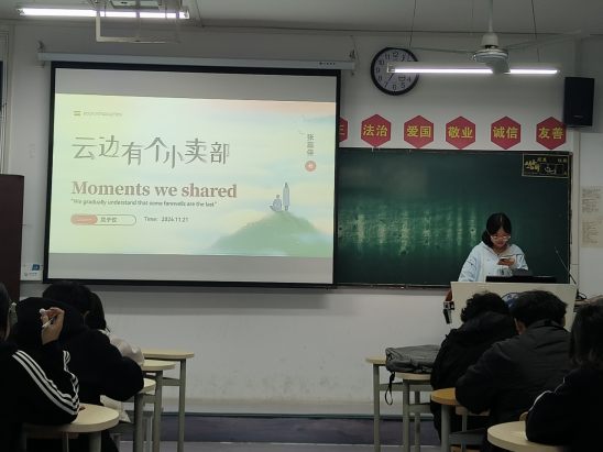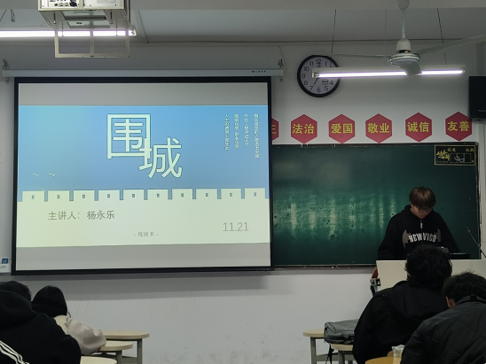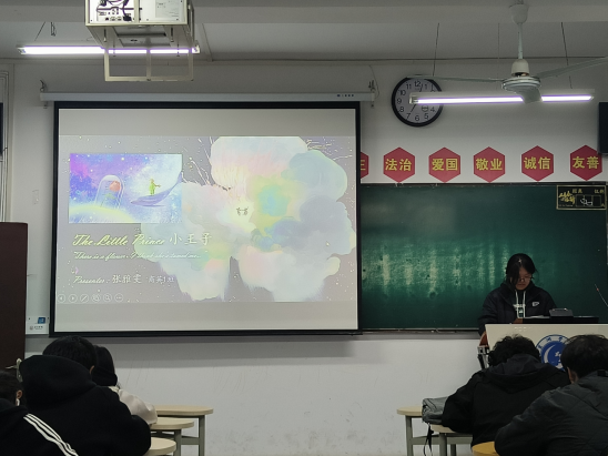 第二期“英文悅讀”讀書沙龍交流分享會由七名同學(xué)依次分享閱讀讀物,各位同學(xué)從閱讀過的書籍中,挑選一本讀物分享推薦,同學(xué)們精心制作PPT,從作者簡介、內(nèi)容概要、精彩片段和讀后感悟四個部分依次做分享與交流。24級商務(wù)英語一班蔡心雨帶著同學(xué)們短暫逃離現(xiàn)實世界來到了“小王子”的身邊,讓我們感受到情誼與友愛。24級商務(wù)英語一班楊永樂推薦《圍城》,給予大家更多面對困難時的勇氣。分享交流會結(jié)束后,同學(xué)們互相交流討論,紛紛表示該活動的開展加深了大家對閱讀的認識,增強了閱讀興趣,同時也豐富了同學(xué)們的課余生活。