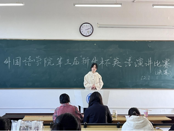為加強2024級新生們對中國式現(xiàn)代化道路的理解與認同,提高同學們的民族自豪感和自信心,充分運用英語知識講好中國式現(xiàn)代化道路,12月1日下午,外國語學院在明德樓西二階梯教室舉辦第三屆“新生杯”英語演講比賽。本次比賽由外國語學院主辦,外國語學院易班工作站承辦。